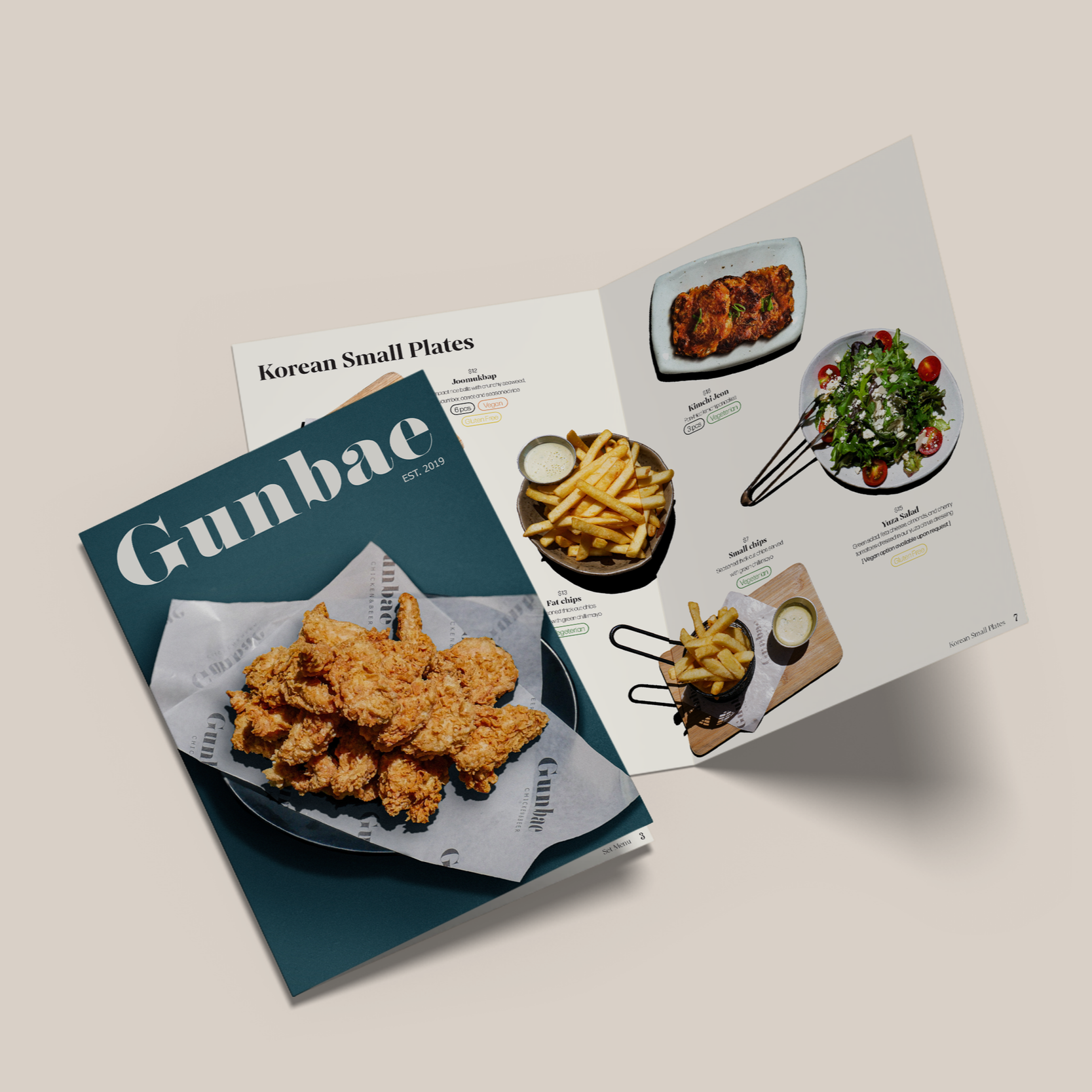 The fringe menu design for Gunbae encapsulates the festive and playful energy of this season, utilising a strong colour palette with a playful pattern which references the architecture design of Union St. Bold and unique typefaces were used to personify the various sections of the drink menu. Whereas the set menu utilised a strong structured layout to ensure clarity in identifying the menu items and dietary requirements. The standard menu for Gunbae inspired by magazines, utilised a minimalist style yet effective grid structure to ensure legibility and readability while customers read the menu. Colour is used to distinguish various aspects of the menu such as flavours and dietary concerns.